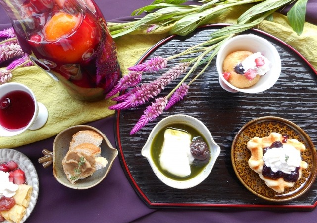 ・コンフィチュール deクレープ ・フクユタカきなこ黒蜜団子・ミニワッフル ブラックベリーソース ・薬膳ジンジャーシロップ アイス ・ミニもなか あずきバター ・呉とうふ抹茶ぜんざい・ポルチーニパテ バケット 武雄パクチーペッパー