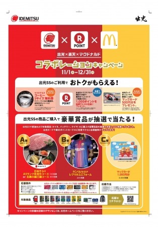 (2)キャンペーン期間中に、出光SS・マクドナルド両方で同一の楽天ポイントカードをご利用の方に抽選で、