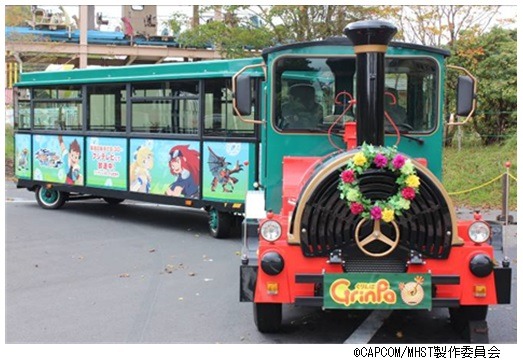 今年4月に登場した新アトラクション「ぐりんぱ周遊トレイン ~みんなでシュシュポッポ~ 」が、期間限定で「モンスターハンター ストーリーズ RIDE ON」仕様に一新!本コラボのために録り下ろした、主人公リュート役の田村睦心さん、シュヴァル役の逢坂良太さんによるオリジナル車内アナウンスが流れます。リュートとシュヴァルによる、地元・静岡県にちなんだクイズの楽しい掛け合いを聞きながら園内を周遊することが出来ます。
