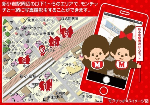 葛飾区が運営するスマートフォンアプリ「葛飾区総合アプリ」上で、AR技術を活用し、モンチッチがデザインされたフォトフレームを使用して現実の風景をバックに写真撮影ができる「新小岩モンチッチAR機能」の提供が開始されました。