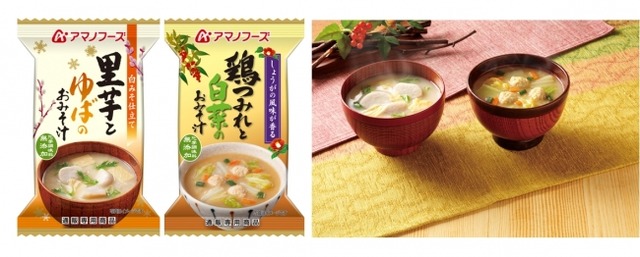 『里芋とゆばのおみそ汁』『鶏つみれと白菜のおみそ汁』は、昨年も冬季に数量限定で発売した商品です。お湯を注ぐだけで、冬を感じる食材を使ったおみそ汁が手軽に食べられるとあってご好評をいただきました。今季もお客様のご期待にお応えして、昨年と同じレシピで作りました。