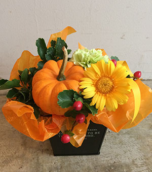 かぼちゃや色とりどりの季節のお花を使って、ハロウィンの飾りにぴったりなオリジナルのフラワーポットを作ります。