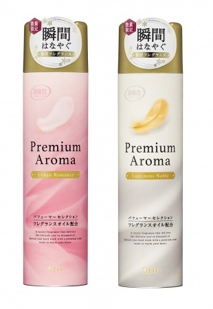香りは「玄関・リビング用 消臭力スプレー Premium Aroma」と同じく、パフューマーが厳選したフレグランスオイルを配合した〈アーバンロマンス〉と〈ルミナスノーブル〉です。