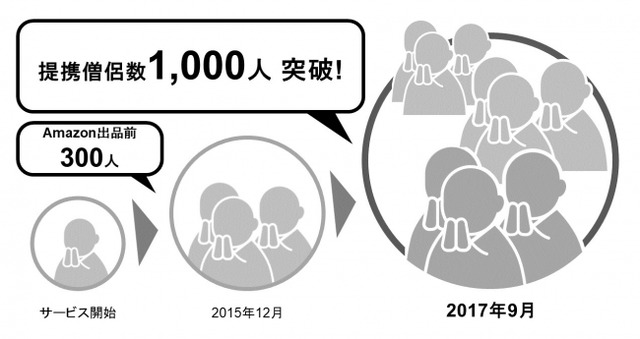 2013年8月にサービスを開始した「お坊さん便」の提携僧侶数は、2015年12月から700人増加し、2017年8月時点で合計1,000人を突破しました。本年度中には1,100人に達する見込みです。