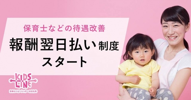 そこで、キッズラインでは、いままでも保育者が働くモチベーションを高く維持するために「好きな時間に、好きな時給で働ける」「毎回お客様から評価レビューを受け取る」など、様々な「保育の働き方革命」を行ってきたが、今回は、お金の不安を減らす新たな仕組みとして【報酬の早払い振込】をスタート。現在キッズラインの報酬支払いは、毎月1回だが、今後は、希望すれば最短翌営業日に報酬が受け取れる制度を導入した。