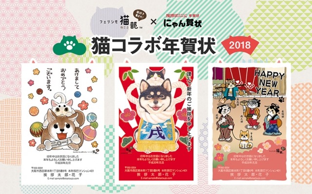 株式会社グリーティングワークス(所在地:大阪市西区、代表取締役:徳丸 博之)は、挨拶状ドットコムの年賀状印刷サイト(http://nenga.aisatsujo.jp/)コンテンツ、猫が主役の年賀状「にゃん賀状」にて、株式会社フェリシモが運営する猫好きが集まるWEBコミュニティー「猫部」とコラボしました。提供いただいたオリジナル年賀状デザイン6点は、2017年11月1日より特設サイトにて購入いただけます。また、購入者限定「きずにゃばこ」も3,000名様にプレゼントいたします。