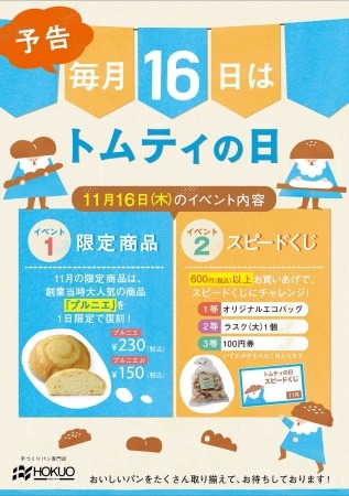 これを記念して、リブランドに合わせて誕生した、HOKUOの新しいブランドパーソナリティー「トムティ」にちなんで(トムティ : ト=10、ム=6)、毎月16日に様々なイベントを実施してまいります。