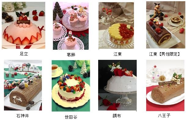 ■メニュー各料理教室でオリジナルメニューのクリスマスケーキを作ります。