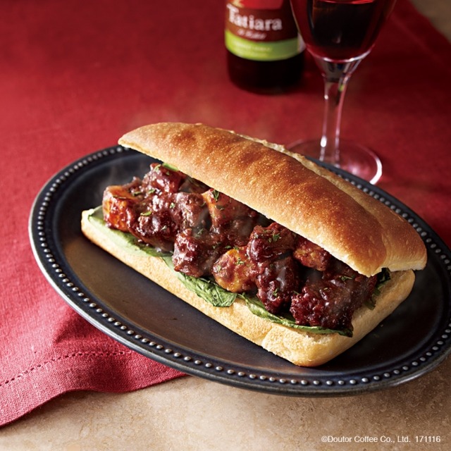 赤ワインでじっくり煮込んだ牛肉がホロッと柔らかな口どけのホットサンドです。