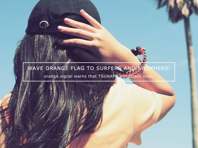 1)陸でオレンジフラッグを振る人が見えたら「津波が来たぞ、早く海から上がれ」