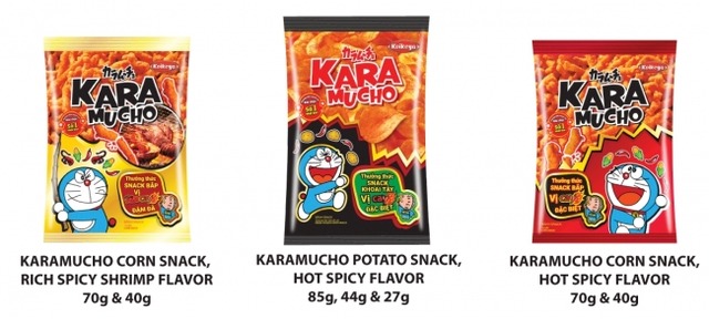 ベトナムにおいて、Koikeya Vietnam Co.,Ltd.の第一号商品展開をするにあたり、1984年の発売より30年以上の歴史を重ねる日本生まれの辛味スナックの代表的ブランド「カラムーチョ」と日本生まれのキャラクターとしてベトナムにおいても高い人気と知名度を誇る「ドラえもん」とでコラボレーションした「カラムーチョ」ブランドの新商品を2017年10月よりホーチミン市を中心に順次発売開始しました。