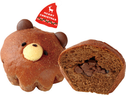 ココア生地にダイスチョコレートを包んで焼きあげました。クリスマス限定の可愛いこぐまさんです。