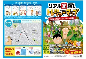 平成29年11月11日(土)、12日(日)及び18日(土)、19日(日)の4日間限定で、四街道駅周辺を捜索エリアとしたリアル宝探しイベントを開催します。