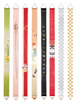 飾る場所も掛け方も自在な、細幅のタペストリー。鮮やかでモダンな柄は部屋の和洋を問わずお洒落に季節感を演出できます。ナチュラルな風合いの手機織りの麻100%生地に、卓越した職人の技法で色彩豊かに手染めしています。