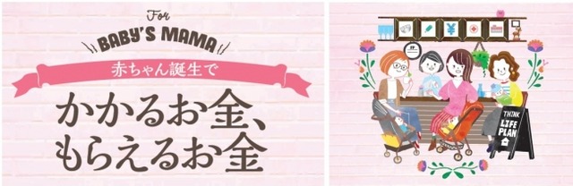 本冊子は、出産を機に将来の資金計画(ライフプラン)を考えることの重要性や問題を認識していただくことを目的にご提供しております。特に、産後のママ・プレママさんに本冊子を通じて、赤ちゃん誕生でもらえるお金や受けられる手当のことを知っていただき、将来にわたって教育費がどのくらいかかるのかを認識してもらうことができます。また、専業主婦や仕事を続けるママたちの家計簿もご紹介しながら、赤ちゃん誕生後の家族の家計のことを具体的に把握し、見直していただけることができます。