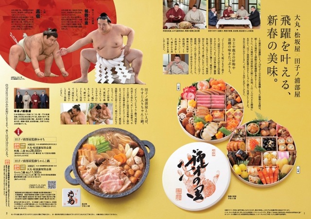 1月場所の初優勝によって19年ぶりの日本出身横綱となった稀勢の里関は、続く3月場所でも感動の逆転優勝を果たすことに。さらに、5月場所では高安関が大関へと昇進。この二人の大きな躍進にあやかり、田子ノ浦部屋監修のおせちとちゃんこ鍋をご用意!