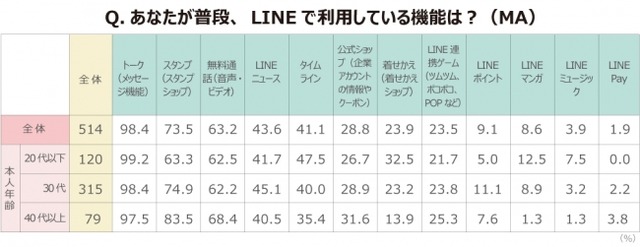 ■ ママたちがLINEで利用する機能は「トーク」「スタンプ」「無料通話」