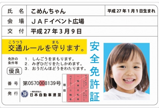 JAFコーナーでは交通安全クイズに答えて発行される「子ども安全免許証」を出展。お子さまに楽しみながら交通安全を学んでいただけるコンテンツを用意しております。
