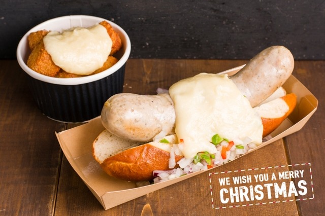 昨年80万人以上が来場した「Christmas Market in 横浜赤レンガ倉庫」。8回目の開催となる今年は、本場ドイツのクリスマスマーケットの中でもイルミネーションの美しさが際立つ“ケルンのクリスマスマーケット”の世界観を表現し、海側には高さ約12mの大きなクリスマスツリーが飾られます。Cheese Dish Factoryではドイツ料理の定番であるソーセージや、それをプレッツェルパンで挟んだホットドッグなどの上から、とろ~りチーズをたっぷりかけたアツアツの料理を味わえます。