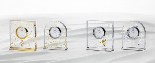 透明感のあるアクリルにスワロフスキー(R)・クリスタル、金属台座の組み合わせが上質感を醸し出し、小ぶりで使用するスペースをとらずいろいろな場所でご使用いただけます。