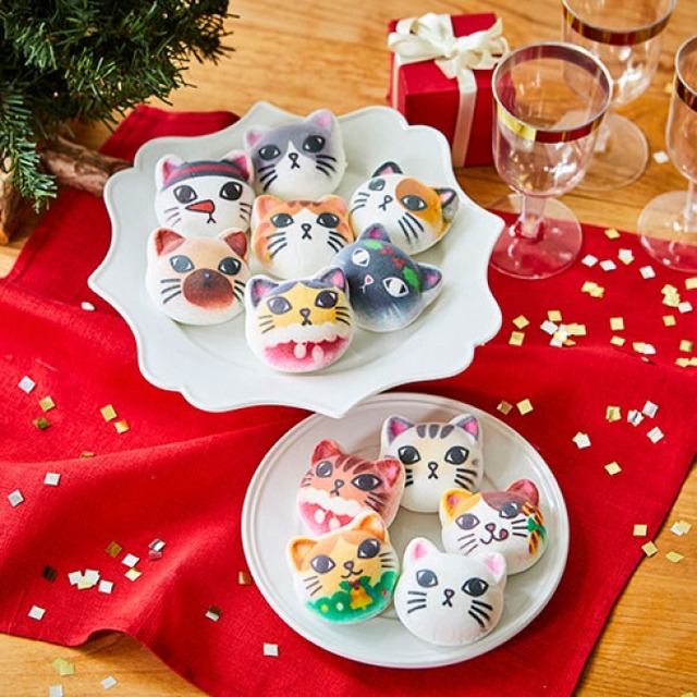 クリスマスの装いをした“ツンデレにゃん”6個と、ベーシックな“ツンデレにゃん”6個、全部で12個のニャシュマロをお届けします。(画像上2段はクリスマスの装いをした“ツンデレにゃん”、下2段はベーシックな“ツンデレにゃん”)