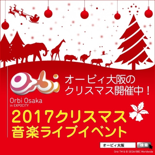 アコースティックのクリスマスメドレーライブをお楽しみいただける「オービィ大阪クリスマスライブ」(協力:島村楽器)や、ママポップジャズバンド「Jazzy’s(ジャジーズ)」(協力:子育てサークル「マミー・クリスタル」を、サバンナや海で暮らす動物たちが映し出される巨大スクリーンの前で開催。13時半からは、お子様でもお楽しみいただけるキッズライブ、16時からは大人の方もお楽しみいただけるライブを開催します。