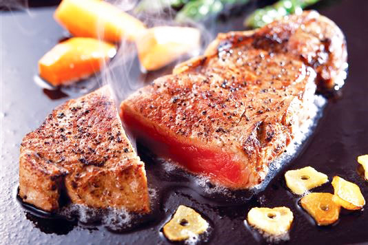 注文を受けてから丁寧に焼き上げるオーストラリア産牛ロースステーキ。熱々の鉄板にて提供されたステーキに2種のソース[手作り玉ねぎ醤油] [おろしポン酢]をかければ、芳ばしい香りがたちのぼります。さらに、サラダ、スープ、デザートのシャーベット、グラスワインすべてが、90分間は選び放題、食べ放題、飲み放題。ステーキはそこそこに、サラダを沢山たべたり、サラダを前菜にワインを楽しみメインでステーキを食べたりと、自由なスタイルが人気の秘密です。小学生未満のお子様はお子様用の食器をご用意しますので、家族でシェアしながらお召し上がりいただくことも可能です。