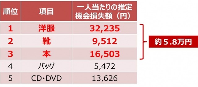 2.昨年の大掃除で処分されたモノ上位3つの推定機会損失額は一人当たり約5.8万円