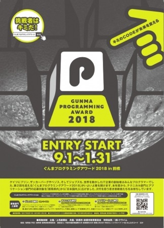 ぐんまプログラミングアワード(GPA)は、IT産業をこれからの群馬県の主幹産業に育て、プログラミング教育先進県となることを目指して、上毛新聞社主催(共催:前橋市・前橋市教育委員会)で2017年に始まったプログラミングコンテストです。対象となるのは、小・中・高校生・大学生・専門学校生の24歳以下の方で、初回の2017年度は「群馬県内在住者」に限定していましたが、2018年度から三部門のうち二部門の募集対象を「日本国内在住者」へと門戸を広げています。初回は79組150名が応募し、多くの優れた人材が発掘されました。2年目となる今年は東京会場予選会も新設されており、全国各地から若き才能が集うことが期待されます。