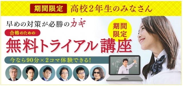 多くの受験生を難関大学合格へ導いてきた実力講師陣の映像授業が2017年11月13日~2018年1月31日までの期間限定で体験可能。