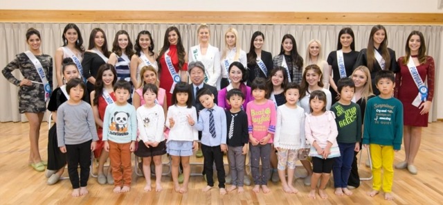 ミス・インターナショナル世界大会候補者20名と園児たち(2017/11/9撮影)