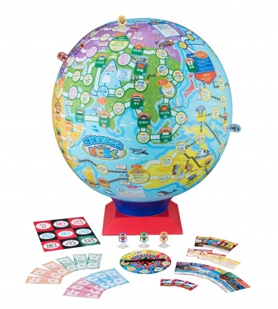 直径約50cmの球体のすごろくです。地球型ボールはビニール製で、空気を入れて膨らませ、付属の台座にセットして使用します。専用のコマには吸盤が付属しており、地球型ボールに吸着させてゲームを進行させます。マス目には世界約100の国名と地域名が記載され、世界遺産を巡る旅をし、賞金を勝ち取っていきます。日本に帰国し、ゲーム終了時点で所持金が一番多いプレイヤーが優勝です。