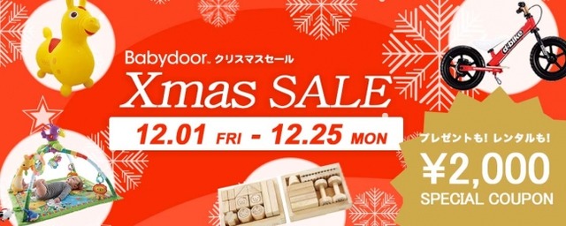 Babydoor株式会社(東京都豊島区、代表取締役社長:中川阿美)は、2017年12月1日(金)~2017年12月25日(月)の期間、クリスマスセールを実施いたします。セール期間中はクリスマスプレゼントにぴったりな商品が多数ラインナップいたします。更に、お客様からのご要望にお応えして新商品も続々入荷予定です。ぜひこの機会にお求め下さい。