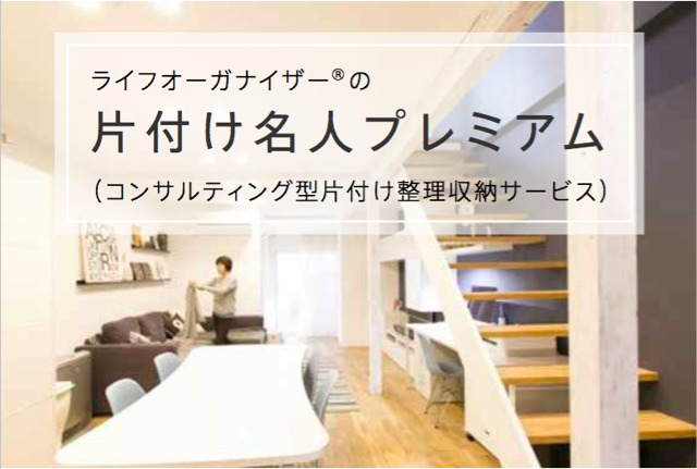 「片付け名人プレミアム」は、ライフオーガナイザー(R)(※1)による綿密なコンサルティングと片付け支援、維持するためのアドバイスにより、片付けた後のリバウンドを予防することを特長とした、家事代行型のサービスとは一線を画す本格的な片付け支援パッケージサービスです。