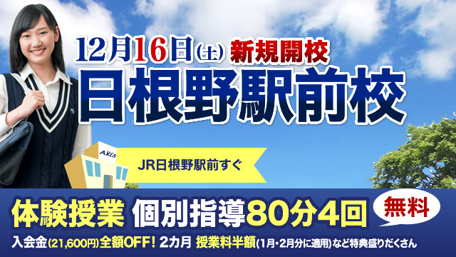 開校を記念し、特典をご用意しました。見学・学習相談は、いつでも承っておりますので、ぜひこの機会に「個別指導Axis日根野駅前校」をご利用ください。