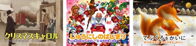 機内モニターでは、森のえほん館で掲載の絵本コンテンツ「日本の昔話」および「世界の童話」カテゴリの100作品以上の中のクリスマスおよびお正月の絵本「クリスマスキャロル(A Christmas Carol)」「じゅうにしのはじまり(The Beginning of the Chinese Zodiac)」「てぶくろをかいに(Buying Mitten)」の3作品の日本語版と英語版を、動画として視聴することができます。併せて、機内誌「ANA SKY CHANNEL」およびANA公式ウェブサイト「ANA SKY WEB」へも掲載されます。