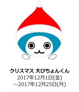 2017年も残すところ12月のみとなりました。特別仕様のちょっとお茶目でおめでたい大ぴちょんくんを見て、ハッピーな気分で2017年の締めくくりと2018年の新たなスタートをお過ごしください。