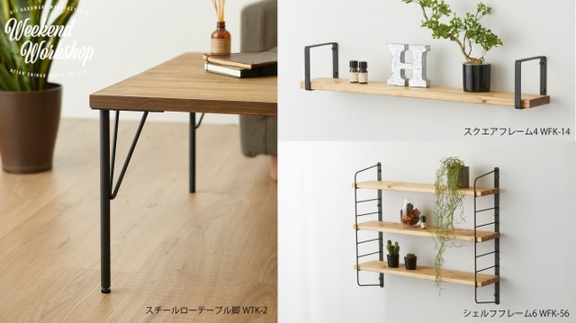 男前インテリアを気軽に実現できるアイアン素材のDIYパーツブランドです。市販の木材を取り付けて、お好きなサイズの机や棚を簡単に作ることができます。テーマは「STAY YOUR CREATIVE WEEKEND!(クリエイティブな週末を過ごそう!)」。手間と技術が必要だと思われがちなDIYを、身近で週末に楽しんでいただけるアイテムとして提案します。