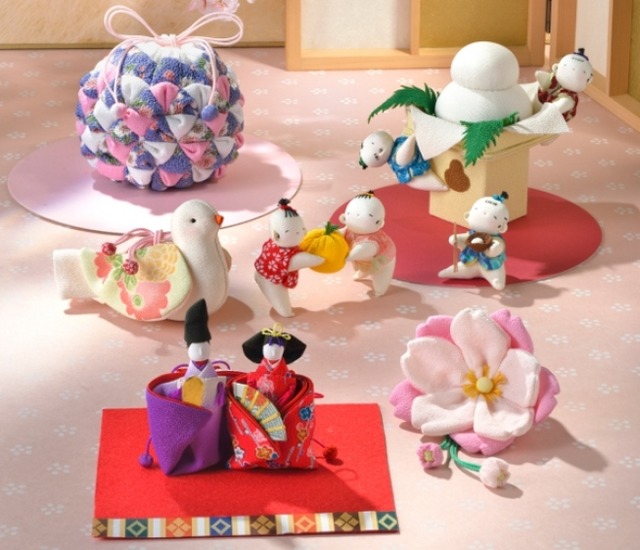 着物や風呂敷で馴染みのある、柔らかいちりめん布を使用して、人形や小物入れなどを作ります。