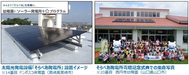 ソニー損害保険株式会社(東京都大田区、代表取締役社長:丹羽 淳雄、以下「ソニー損保」)は、環境保全への取組みの一環として、再生可能エネルギーの普及活動や環境教育を行うNPO法人そらべあ基金(東京都港区、代表:冨田秀実氏、以下「そらべあ基金」)の「そらべあスマイルプロジェクト」(*1)を通じて、京都府京都市の保育園に太陽光発電設備「そらべあ発電所」を寄贈します。