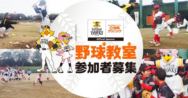 福岡ソフトバンクホークスの2017年シーズンオフィシャルスポンサーの保険ショップ『保険クリニック』は、1月27日(土)に約100名の小学生を招待するホークスOBを講師に迎えてのチャリティ野球教室への参加者を募集します。