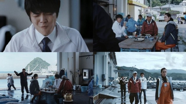 人生、崖っぷちの彼女と、会社の社運をかけ極上の魚を持ち帰らなければならない崖っぷちのかっぱ社員の物語です。第4弾の「やる、しかない。ぶり篇」は、かっぱ寿司の社員「かっぱ」(岡山天音さん)が、「伝説の漁師」(柄本明さん)に脂がのったぶり丼を振舞ってもらところから始まります。そこに突如現れた大手X社の男が「このぶり、ぜーんぶ買い取りますよ。うち、羽振りいいんで」とダジャレを言いながらぶりを買占めようとします。すると、女漁師になりたての娘(吹石一恵さん)が「私、ダジャレとか好きじゃないんで」とつぶやき、「伝説の漁師」が「出直してこい」と一言言い放ちます。それに続いて「かっぱ」も大手X社の男に呆れた顔をしながら3人はその場を立ち去るのでした。だんだんと「かっぱ」の本気が「伝説の漁師」に伝わり、心を開いてもらえる様子が描かれているストーリーになっています。