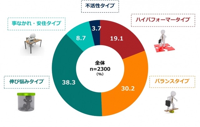 ※ミドル・シニア社員のタイプの分類と割合については、従業員300名以上の大規模企業に勤めるインターネットモニター2,300名を対象にした定量調査の結果であり、協力企業の従業員を対象とした調査の結果によるものではありません。