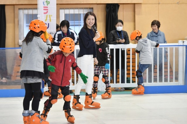 フィギュアスケーターが全国の小学校を訪れる出張体験型授業「スケートキャラバン2017」(朝日新聞社主催、木下グループ特別協賛)の第4回が12月5日、東京都調布市の市立国領小学校であり、女子シングル元日本代表で、フィギュアスケーターの鈴木明子さん(32)が講師を務めました。