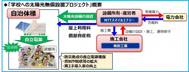 株式会社NTTスマイルエナジー(本社:大阪市中央区、代表取締役社長 小鶴慎吾、以下、NTTスマイルエナジー)は、株式会社柴田工業(本社:愛知県名古屋市、代表取締役 柴田薫、以下、柴田工業)とともに、自治体様の学校施設へ太陽光発電設備を無償で設置するプロジェクトを、本日2017年12月6日(水)より開始致します。
