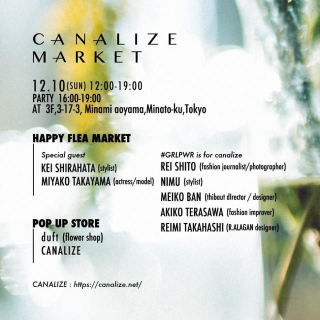 知・遊・音・衣・食・住にまつわる『つくるのありかた』を発信するウェブコンセプトストア『CANALIZE』の活動の一環として、12月10日(日)にマーケットイベント『CANALIZE MARKET 』を開催します。