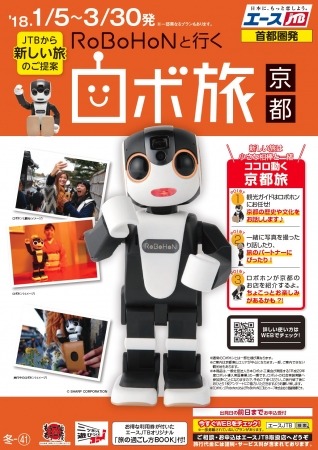 株式会社JTB西日本(本社:大阪府大阪市、代表取締役社長:光山清秀)とシャープ株式会社(本社:大阪府堺市、代表取締役社長:戴正呉)は、ロボットクリエーターの高橋智隆氏の監修および株式会社ゲン(本社:大阪府大阪市、代表取締役:達山源市)の企画・プロデュースのもと、シャープ製のモバイル型コミュニケーションロボット「RoBoHoN(以下、ロボホン(注1))」を使った、京都の観光事業で協業します。本事業は、一般社団法人ロボット工業会により「平成29年度ロボット導入実証事業」として採択されています。JTBは、ロボホンと旅を楽しむ新商品、エースJTB「RoBoHoNと行く『ロボ旅』(注2)(京都)」(首都圏発)を12月15日(金)より販売開始します。