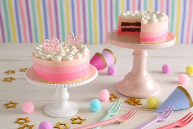 ホワイトチョコ味のムースをピンクのグラデーションにし、バレンタインにぴったりなガーリーなケーキに仕上げます。