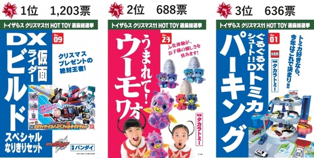 トイザらスがクリスマスにおススメするHOTなおもちゃの中から、お客様の投票によりベスト11を選出する「HOT TOY選抜総選挙」は2017年11月11日から11月30日まで実施され、投票総数は10,351票に上るなど多くのお客様にご参加いただきました。