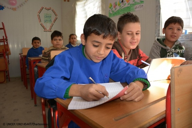 シリアの学齢期の子どものほぼ3人に1人にあたる175万人が学校に通えていないと推定され、学校校舎の3分の1が損傷または破壊されています。